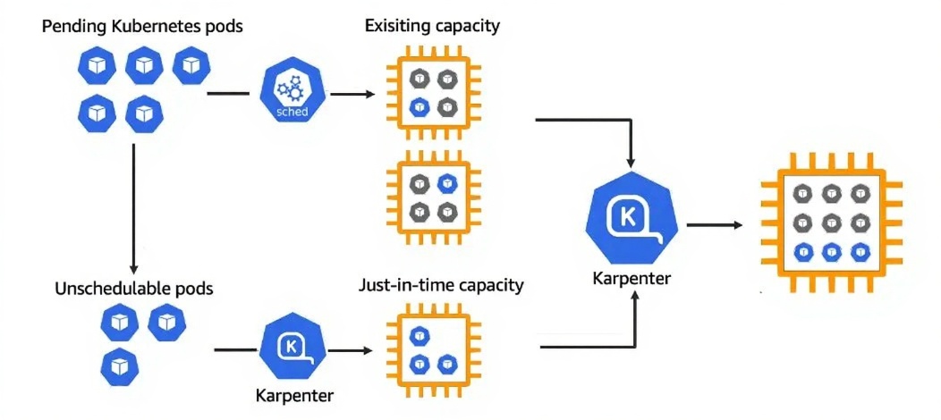 Karpenter 工作原理如下: