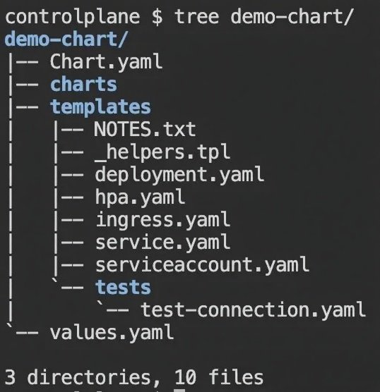 tree <chart_name>🔔 Chart 安装包本质就是文件集合而成的一个目录,目录名称就是 Chart 安装包的名称